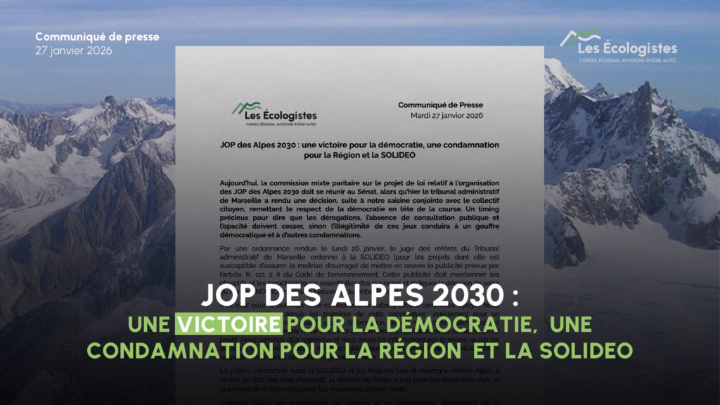 JOP des Alpes 2030 : une victoire pour la démocratie, une condamnation pour la Région et la SOLIDEO